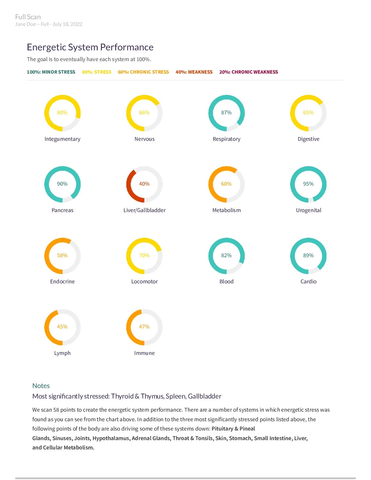 14 body systems like the digestive system, nervous system, liver/gallbladder, metabolism etc tested and rated on a scale of 1-100 based on energetic performance.